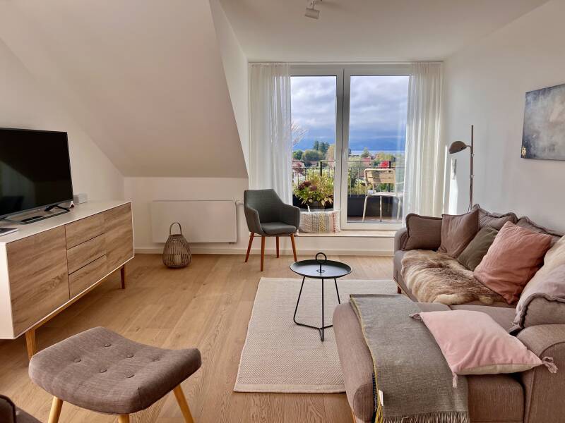 Unsere neu eingerichtete Ferienwohnung im DG lädt ein zu einem erholsamen Urlaub in Wasserburg am Bodensee.