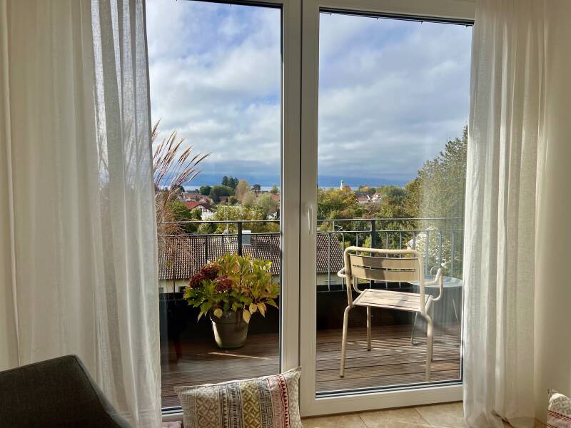 Die Ferienwohnung liegt im oberen Wohngebiet von Wasserburg. Von der Wohnungtüre aus gelangt man über zwei Treppen in die Ferienwohnung im DG.